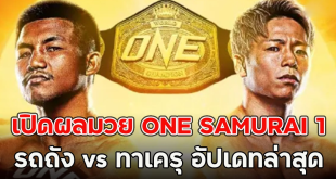วันที่ 30 เมษายน 2569 ทาเครุ เซกาวา ซูเปอร์สตาร์เจ้าถิ่น เอาชนะน็อก รถถัง จิตรเมืองนนท์ ในศึก ONE Samurai 1 ณ อาริอาเกะ อารีนา กรุงโตเกียว ประเทศญี่ปุ่น คว้าแชมป์โลก ONE คิกบ็อกซิง รุ่นฟลายเวต เฉพาะกาล พร้อมปิดฉากอาชีพนักสู้อย่างยิ่งใหญ่ โดยคู่เอกที่แฟนมวยทั่วโลกรอคอย เป็นการรีแมตช์ล้างตาระหว่าง The Iron Man รถถัง จิตรเมืองนนท์ อดีตแชมป์โลก ONE มวยไทย รุ่นฟลายเวต พบกับ Natural Born Krusher ทาเครุ เซกาวา ท่ามกลางเสียงเชียร์กระหึ่มทั้งสนาม เริ่มยกแรกทั้งสองฝ่ายยังคงดูเชิงกันอย่างระมัดระวัง ก่อนเกมจะเริ่มร้อนแรงในยกที่ 2 เมื่อรถถังเปิดเกมบุกตามสไตล์ดุดัน แต่พลาดโดนจังหวะสวนกลับของทาเครุ จนร่วงให้กรรมการนับถึง 2 ครั้งติด แม้รถถังจะพยายามเร่งเครื่องเดินบดหวังทวงคืน แต่ยังไม่สามารถเจาะเกมรับอันเหนียวแน่นและความแม่นยำของคู่ชกเจ้าถิ่นได้ กระทั่งเข้าสู่ยกที่ 5 จุดตัดสินของไฟต์ ทาเครุเป็นฝ่ายไล่ต้อนด้วยหมัดชุด ส่งรถถังลงไปกองเป็นครั้งที่ 3 ก่อนจะรัวหมัดซ้ำจนล้มลงเป็นครั้งที่ …