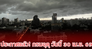 วันที่ 30 เมษายน 2569 กรมอุตุนิยมวิทยา ออกประกาศฉบับที่ 7 เตือน พายุฤดูร้อนถล่มประเทศไทยตอนบน กระทบยาวถึง 1 พฤษภาคมนี้ กรมอุตุนิยมวิทยา ออกประกาศเรื่อง พายุฤดูร้อนบริเวณประเทศไทยตอนบน (มีผลกระทบจนถึงวันที่ 1 พฤษภาคม 2569) ฉบับที่ 7 (47/2569) โดยระบุว่า ในช่วงวันที่ 30 เม.ย. – 1 พ.ค. 69 บริเวณภาคเหนือ ภาคตะวันออกเฉียงเหนือ ภาคตะวันออก ภาคกลาง รวมทั้งกรุงเทพมหานครและปริมณฑล ยังคงมีพายุฤดูร้อนเกิดขึ้น โดยมีลักษณะของพายุฝนฟ้าคะนอง ลมกระโชกแรง ลูกเห็บตก และฝนตกหนักบางแห่ง รวมถึงอาจมีฟ้าผ่าเกิดขึ้นได้บางพื้นที่ เนื่องจากบริเวณความกดอากาศสูงหรือมวลอากาศเย็นจากประเทศจีนได้แผ่ลงมาปกคลุมภาคตะวันออกเฉียงเหนือและทะเลจีนใต้ ในขณะที่ประเทศไทยตอนบนมีอากาศร้อน ทั้งนี้ ขอให้ประชาชนในบริเวณดังกล่าวระวังอันตรายจากพายุฤดูร้อน โดยหลีกเลี่ยงการอยู่ในที่โล่งแจ้ง ใต้ต้นไม้ใหญ่ สิ่งปลูกสร้าง และป้ายโฆษณาที่ไม่แข็งแรง สำหรับเกษตรกรควรเสริมความแข็งแรงให้ไม้ผล และเตรียมการป้องกันความเสียหายที่อาจเกิดขึ้นกับผลผลิต ทางการเกษตรและสัตว์เลี้ยง รวมทั้งดูแลรักษาสุขภาพในช่วงที่สภาพอากาศเปลี่ยนแปลงไว้ด้วย จึงขอให้ประชาชนติดตามประกาศจาก กรมอุตุนิยมวิทยา และสามารถติดตามข้อมูลที่เว็บไซต์กรมอุตุนิยมวิทยา http://www.tmd.go.th หรือที่ 0-2399-4012-13 และ …
